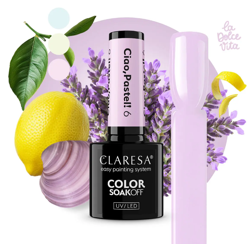 CLARESA Ciao, Pastel! 6 je jemný pastelový světle růžový gel lak s krémově mléčným podtónem. Tento elegantní a velmi ženský odstín dodává manikúře čistý, jemný a romantický vzhled. Pastelově růžová barva patří mezi nadčasové barvy, které jsou vhodné pro každodenní nošení i pro zvláštní příležitosti.